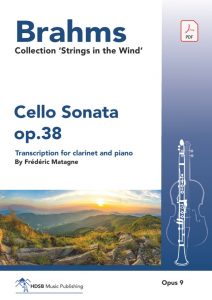 Johannes Brahms. Cello Sonata, op. 38. Transcription for clarinet and piano by Frédéric Matagne. HDSB Music Publishing, 2023. Digital downloads: €14.90 A clarinet part; €12.90 piano score.